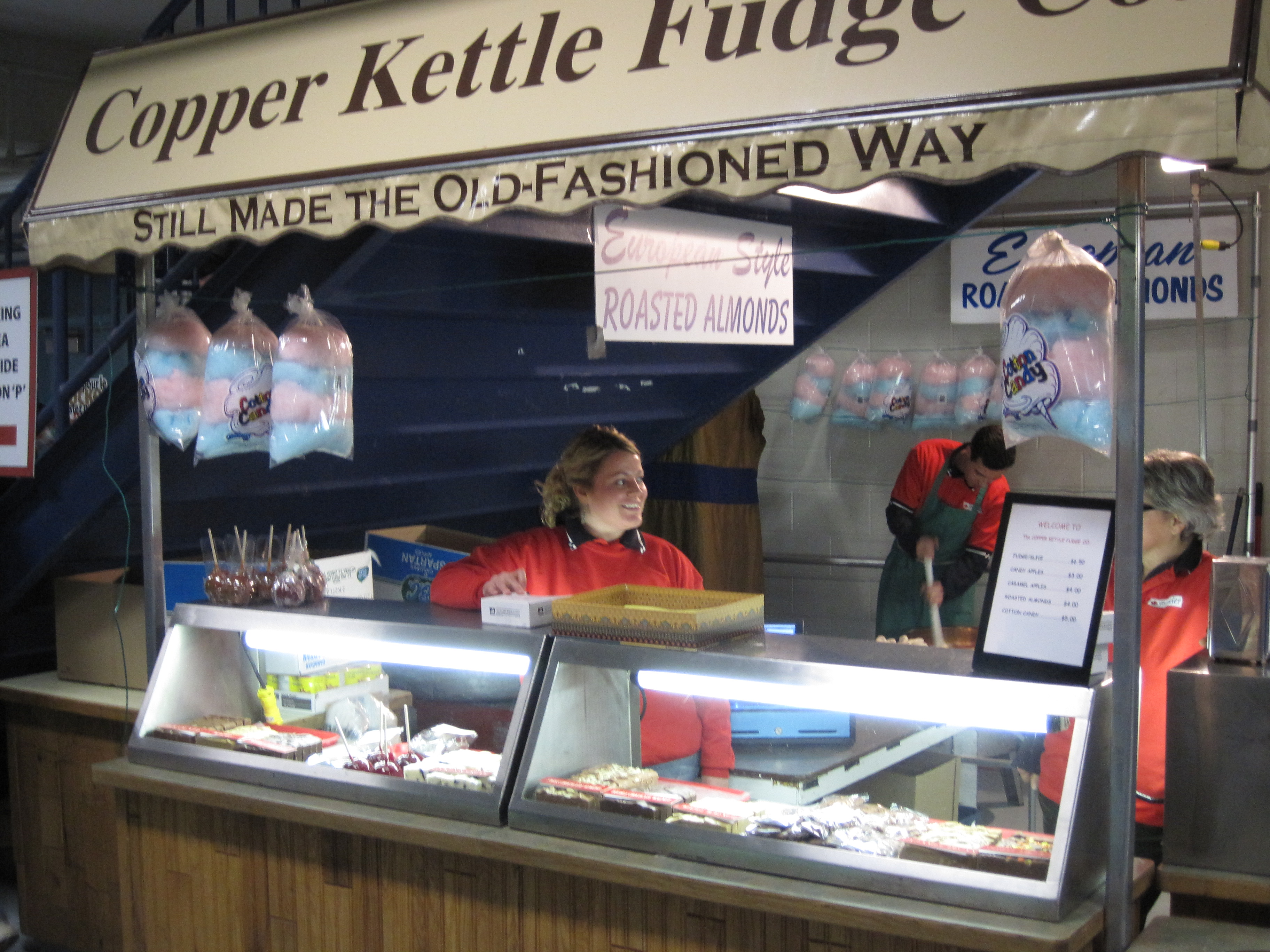 Now for some non-hockey stuff. We wandered over to “WorldFest” between games and I finally managed to have some perogies – they were delish (the ones at the rink were deep fried and quite terrible). We also managed to stumble across a version of a Tiny Tim’s donut shop but they were really greasy. Good, but way too greasy. So then we found a fudge shop. Imagine that. Quite good and reasonably priced at $6.50 per slice. Hopefully by the end of the trip, we’ll manage to get through as many flavours as we can. It’ll be tough, but we’re from Toronto eh, and we can do it.