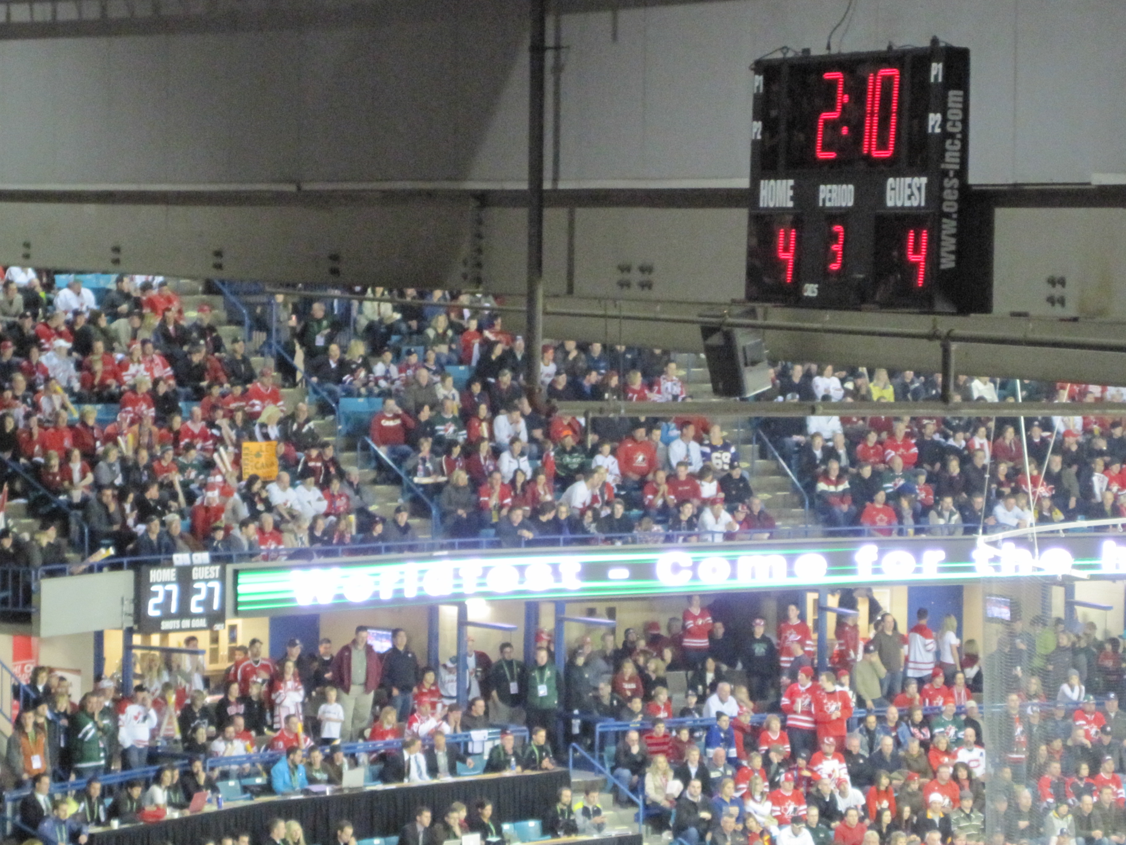 Somehow though, our boys came back. Scoring short-handed certainly helped (after the Americans did it twice to us) and suddenly they seemed to have more focus and did more things right than wrong. There was the goal that wasn’t (called back very questionably) and then when we tied it, well once again the crowd went berserk and the noise level off the charts. Regulation time came to an end and Canada clearly dominated in the 4 on 4 overtime. They looked like the unbeaten team we’d seen before.